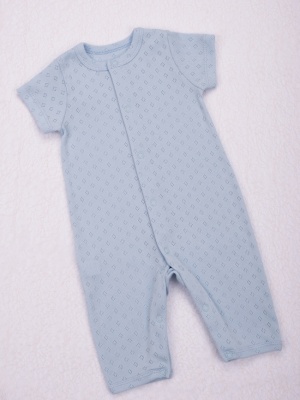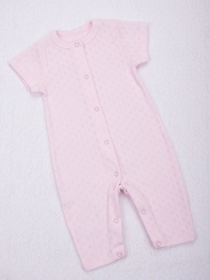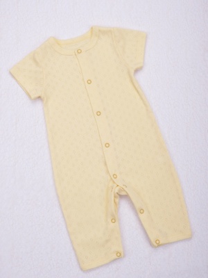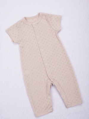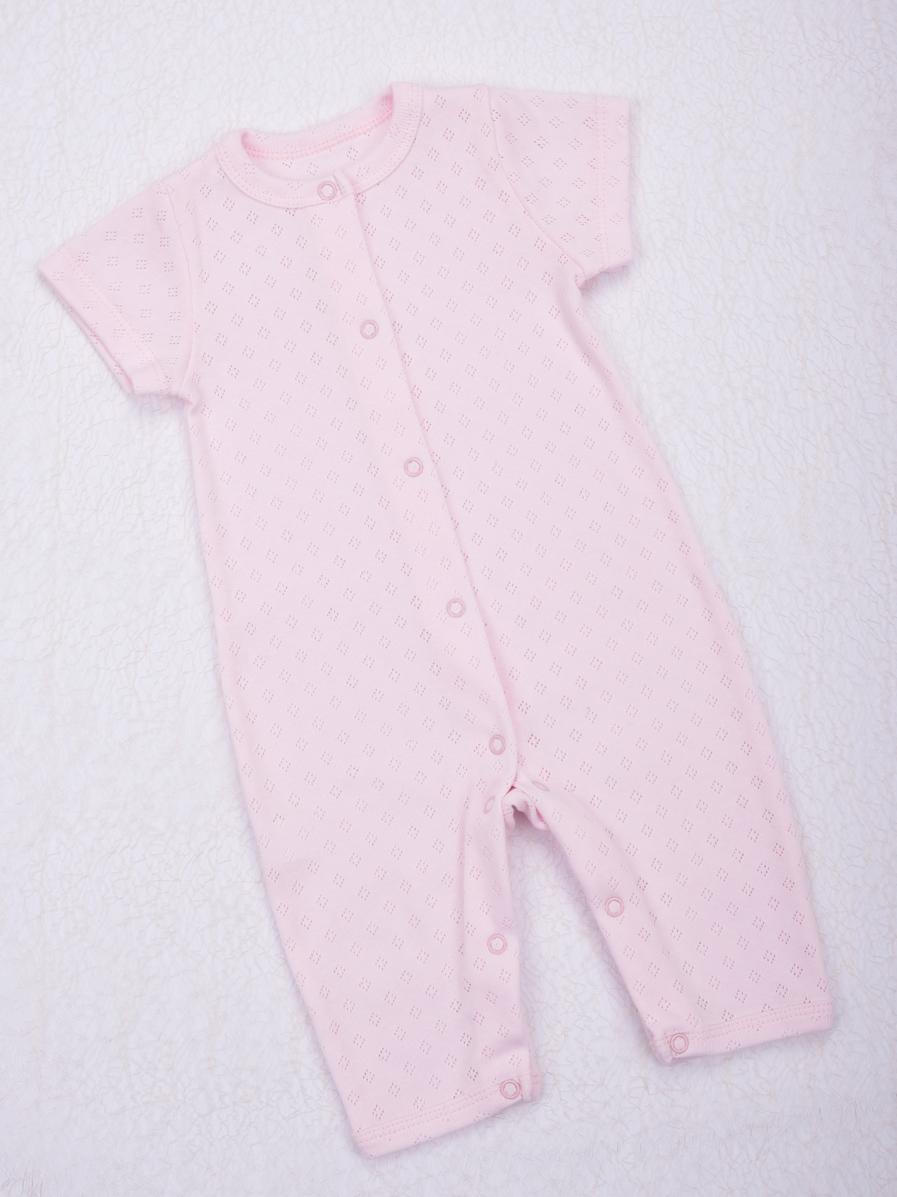 Комбинезон из ажура с короткими рукавами. Комбинезон с открытыми ножками, застежка центральная на кнопки, уходит в ножки.