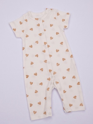 новинка!Нежный комбинезон для малышей из интерлока в рубчик. Комбинезон прямого силуэта, спинка цельнокроеная, полочка состоит из двух половинок. Рукава короткие, застежка центаральная на кнопки, уходит в ножки. Изделие полностью распашное. Нашим малышам!Цвет: 56 62 мишки бир/лав, 56 62 звезды бежевые, 56 62 сердечки бежевые, хлопок на полыни, сердечки на гр.розовом, звезды серо-бежевые, мишки на шампани