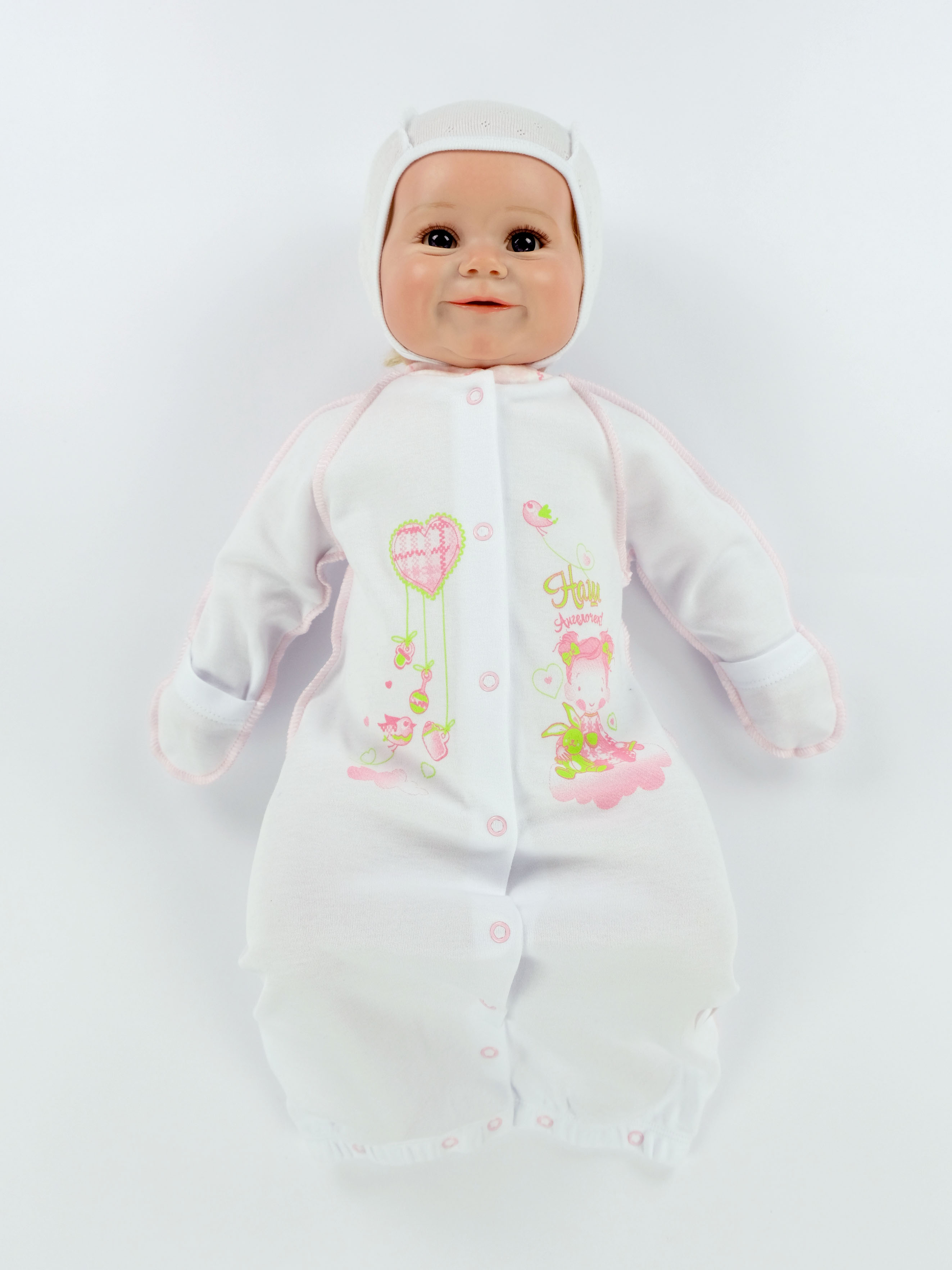 КомбинезоныЦвет: белый с розовой печатью, белый с голубой печатью