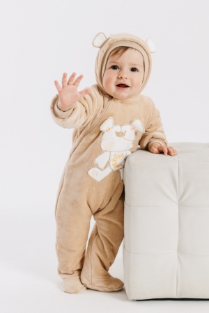 Комбинезон из велюрового полотна, на кулирной подкладке (100% хлопок) и на синтепоне 100 грамм. Комбинезон с капюшоном, рукава с манжетами. Застегивается на молнию, на полочках печатный принт. Уютно, тепло и очень красиво!