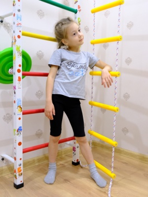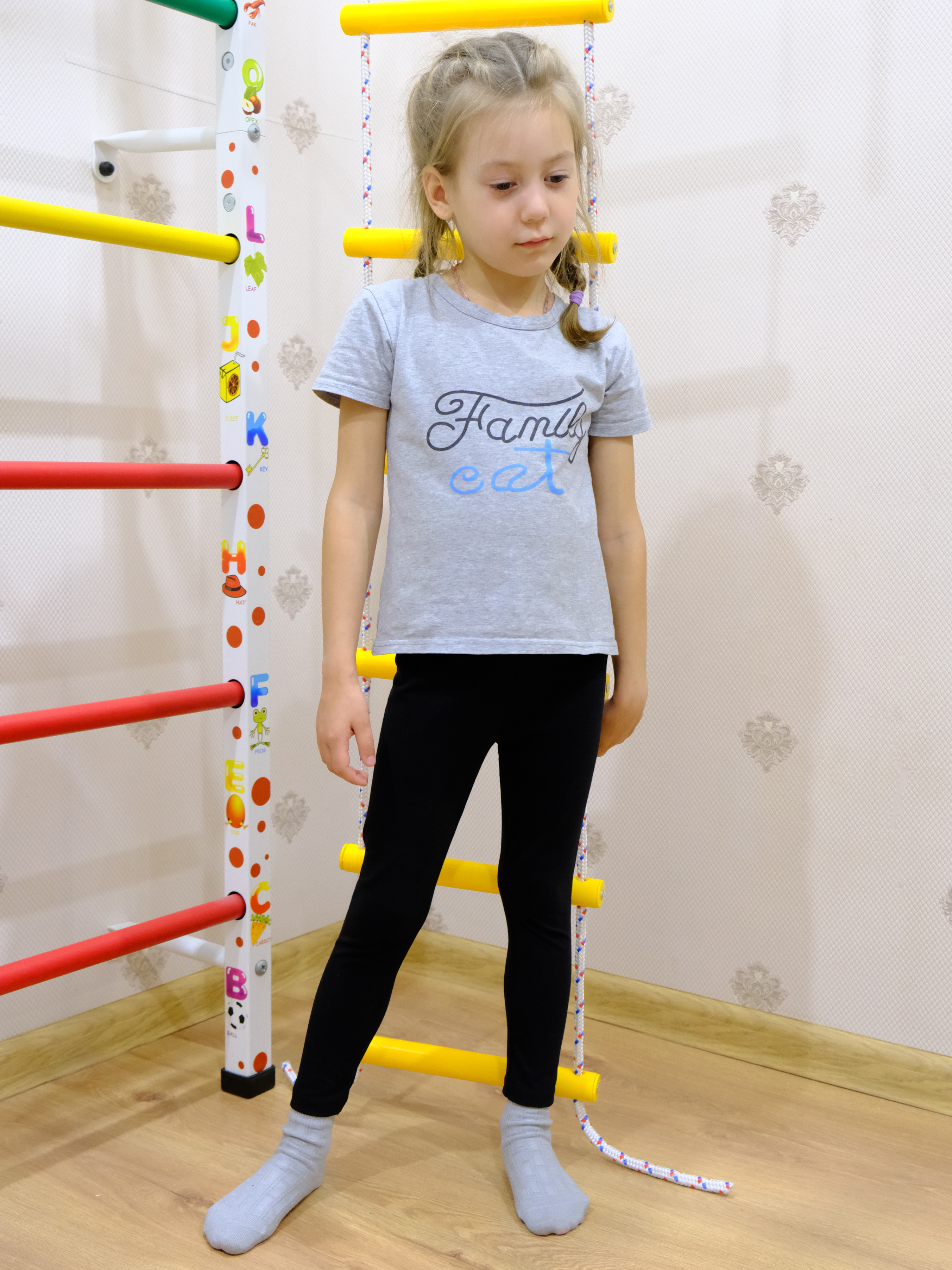 Леггинсы из черной, плотной (220 гр.) кулирки с лайкрой для девочек. Состав полотна: 92% хлопок, 8 % пэ. Леггинсы отлично подходят для занятий спортом в садике и школе.